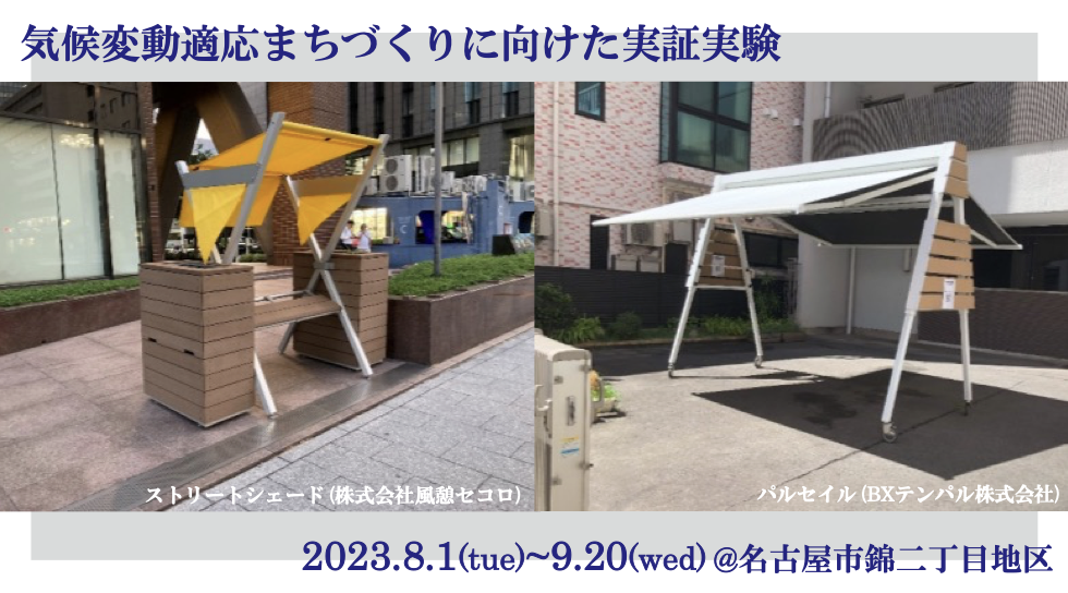 第三に長島町通りでは、繊維問屋街として発展した錦の産業を活かしたカーテンのかかる歩道空間などをご提案いただきました。その結果、正午の時間帯に直射日光を遮るものが少ない南北方向の歩行環境が大きく改善され、特に12時前後においてWBGTが4℃近く下がっている様子が示されました。